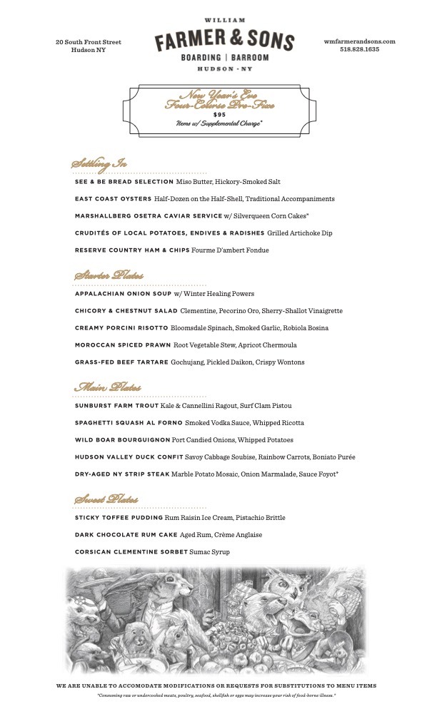 Our reservations are now open for First Night at Farmer! Our annual New Year's eve celebration featuring Chef Farmers four course prix-fix menu! $95/pp